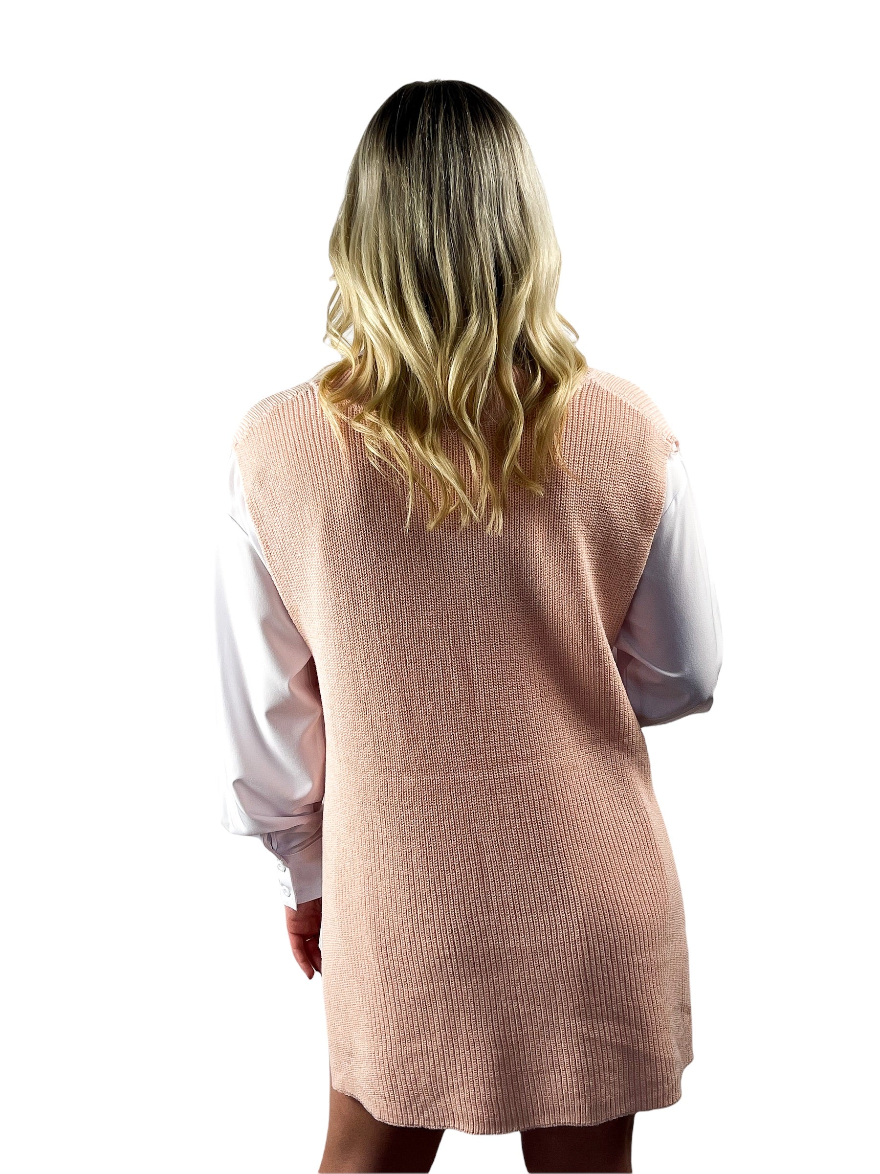 V-Neck Ribbed Side Slit Sweater - Pink