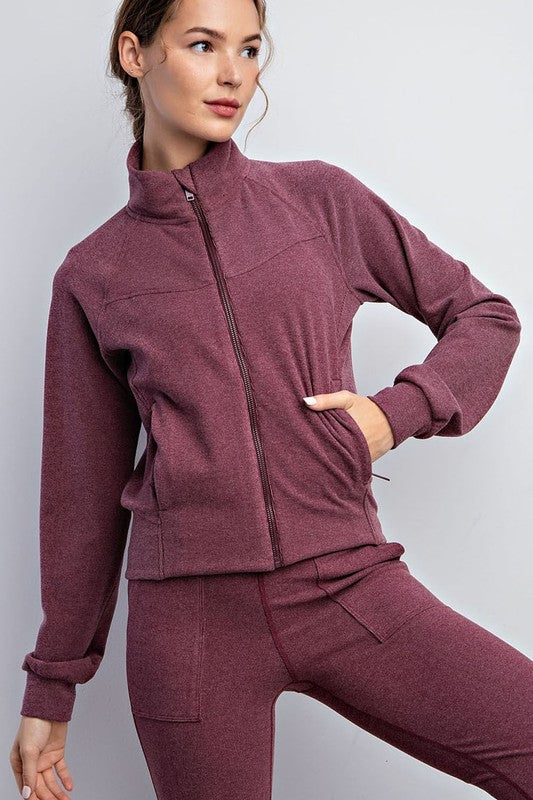 Ribbed Brushed Athleisure Crop Jacket - Maroon