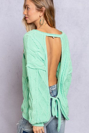 METALLIC FOIL CABLE KNIT SWEATER - GOLD
